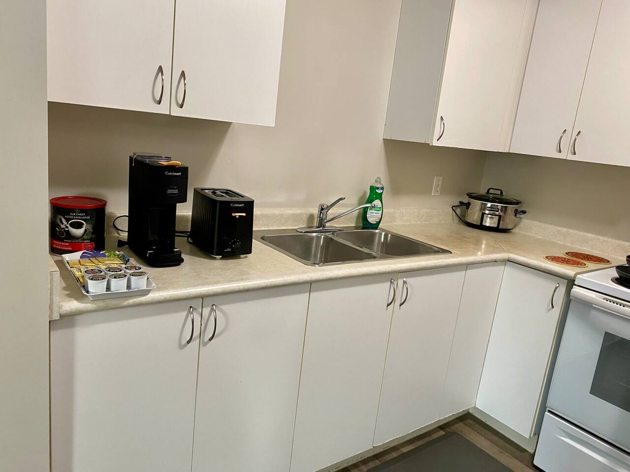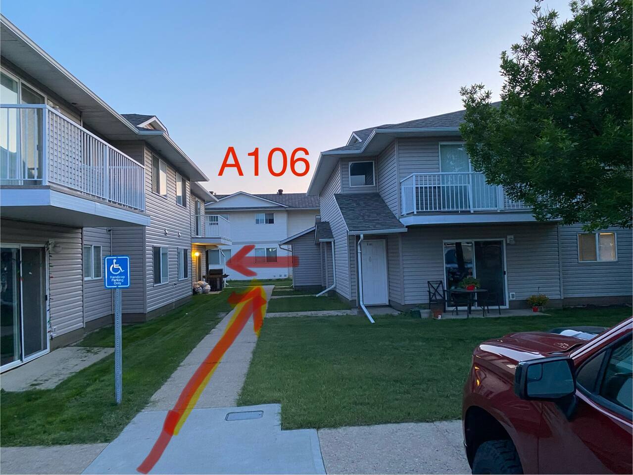 Quiet neighbourhood, the building is a quiet professional retreat. Location is completely key here. Across the street from the Northwestern Polytechnic College, a rocks throw from the Cineplex & Montana's BBQ/Bar. Directly in view of the Bowling alley, new GPR hospital, private parking with additional easy street parking.