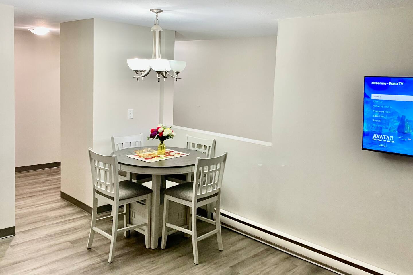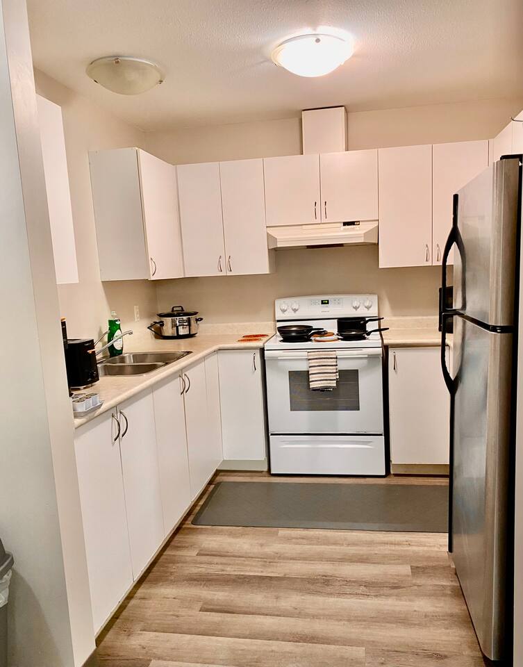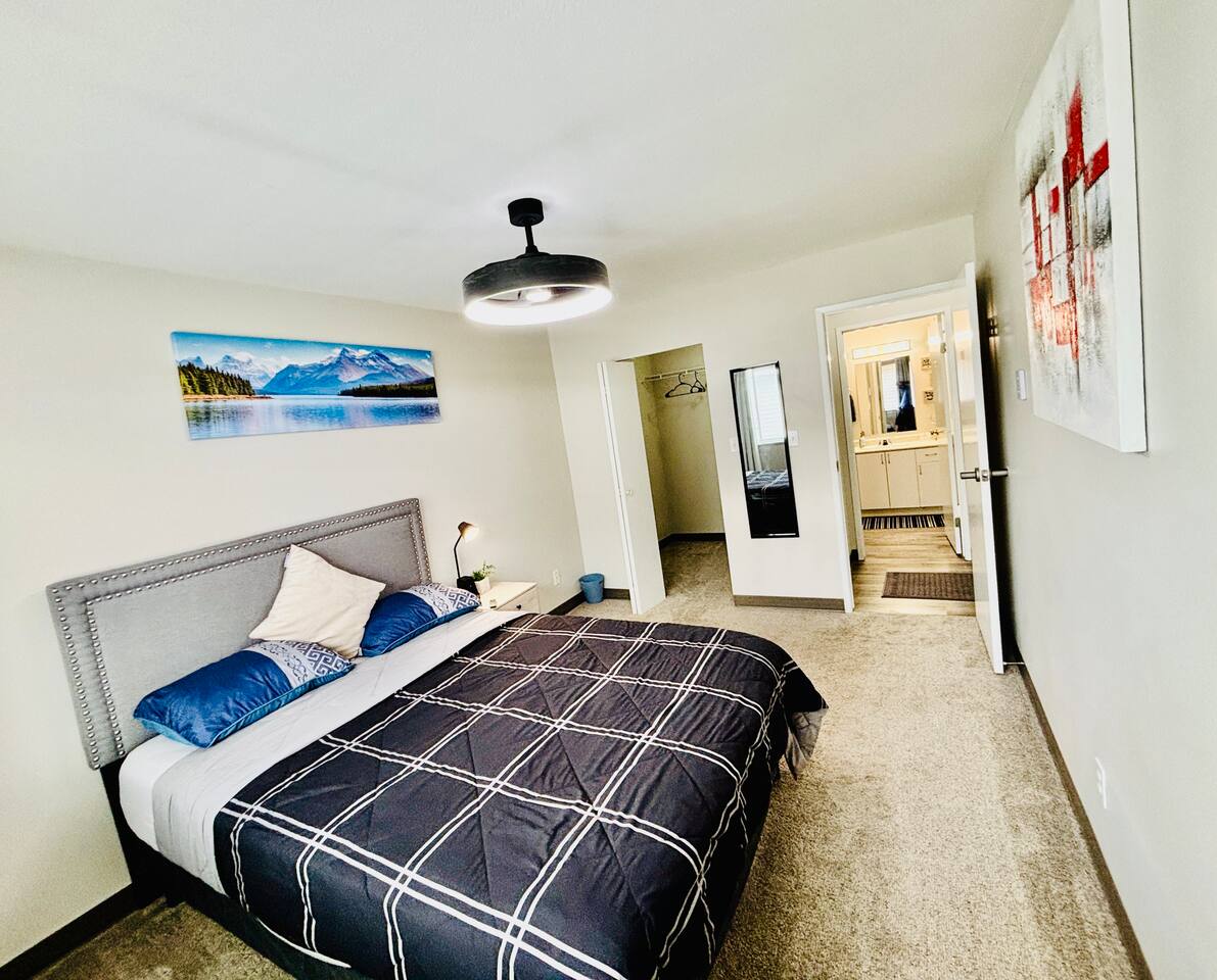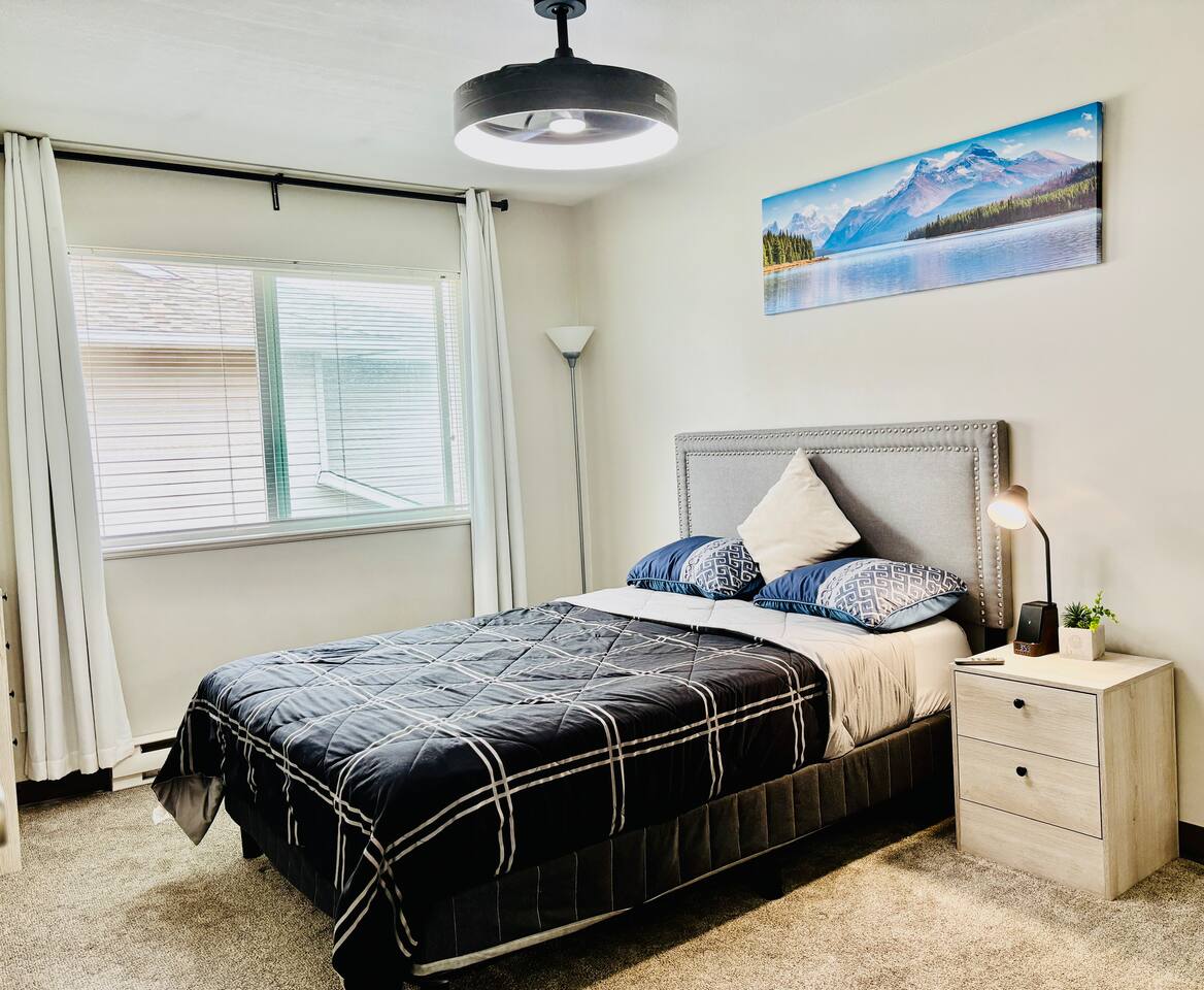 All private condo 2 bedrooms, 1 bathroom spacious yet budget friendly, AirBnB accommodation in west side of Grande Prairie.Portable A/C. Peaceful private Corner condo unit with 2 comfortable Queen beds(new memory foam mattresses-medium). NO SHARING of any kind. GP’s most central location with balcony with BBQ grill in the Westgate area, Grande Prairie. Walking distance to GPRH hospital, Cineplex,Casino, GPRC college,nearby parks,shopping & restaurants. 1 Roku TV with Netflix in living room.