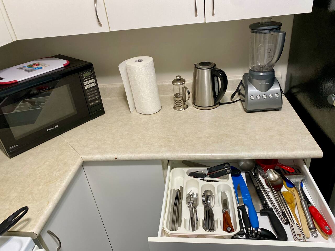 Private Balcony access is prime in the unit, perfect for summer breeze and no need to hear from any neighbours as this is the top corner unit! Master bedroom equipped with portable Air conditioner for your comfort.